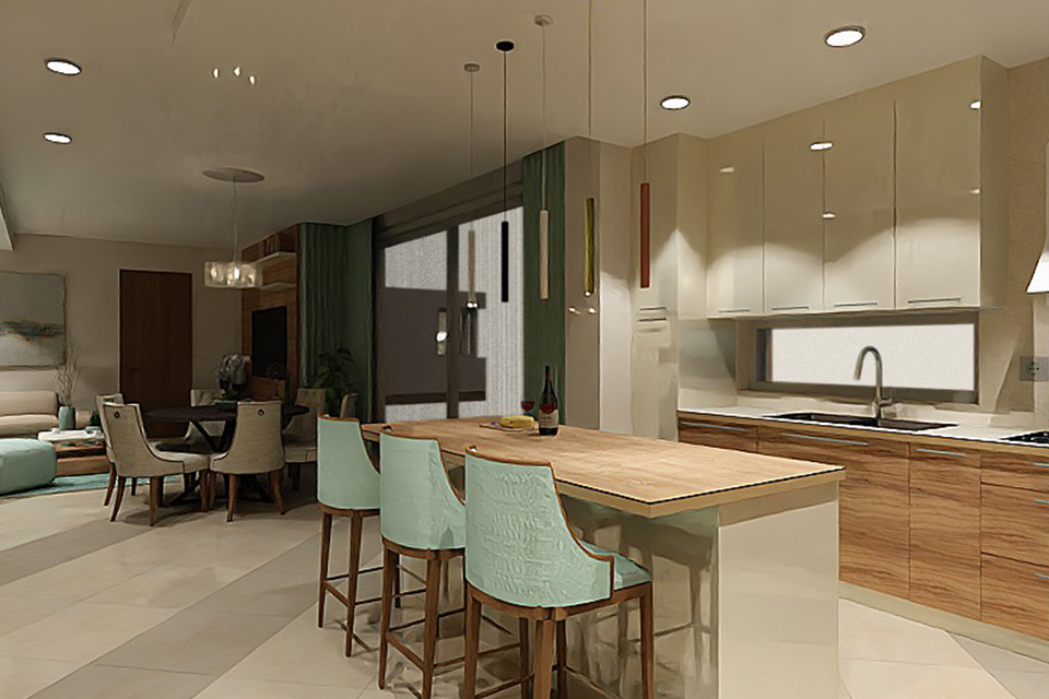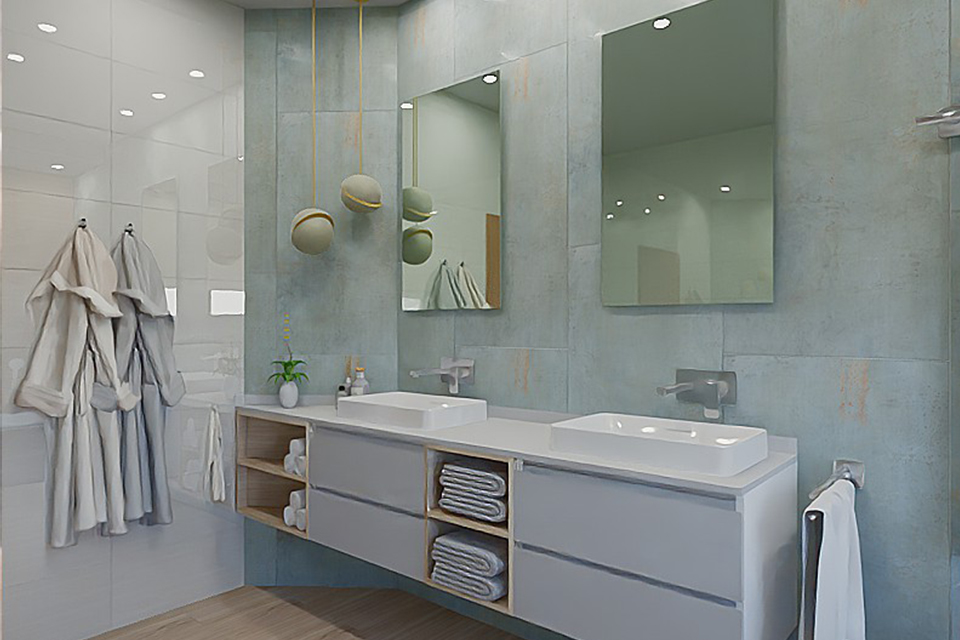 Teljes műszaki dokumentáció elkészítése: Berendezési alaprajz, bontási és falazási terv, burkolási és felületképzési terv, víz és csatorna kiállások pozícionálási terve, szárazépítészeti terv, világítási terv (lámpakiosztás, kapcsolás, elektromos csatlakozási terv, dugaljkiosztás), egyedi bútorok gyártási terve, konszignáció.